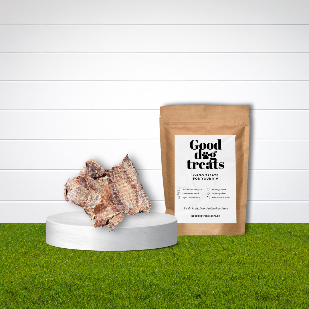 Good Dog Treats uses free-range ethically sourced organic Kangaroo products. There are no preservatives, sodium, fillers, flavours or other additives. Good Dog Treats are 100% Natural, Organic and Ethically Sourced. We source all of our own products and give a 100% Guarantee of the quality of our ingredients.
